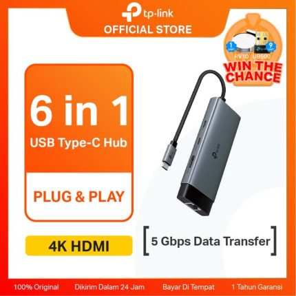 TP-Link UH6120C USB Hub Type C 6 in 1 USB3.0 to 5Gbps Ethernet LAN Internet Plug&Play UHD HDMI Fast Charging Card Computer