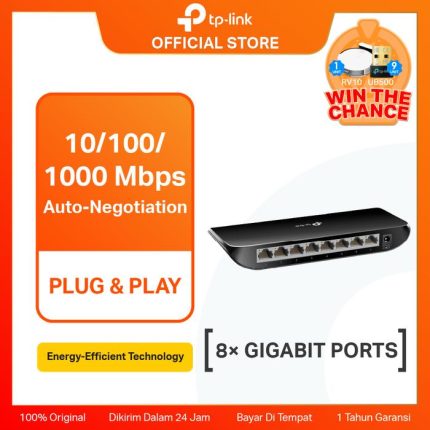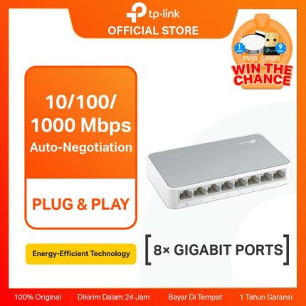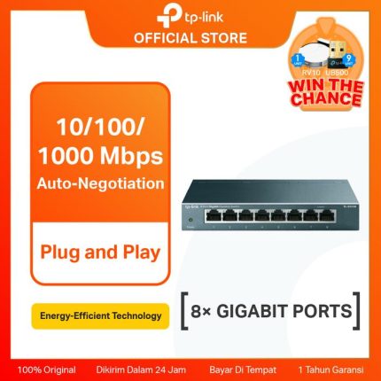 TP-LINK TL-SG1005D TPLink 5 Port Gigabit Desktop Switch Hub Original 5-Port Gigabit Desktop Switch, 5 Gigabit RJ45 Ports, Desktop Plastic Case Kabel Komputer