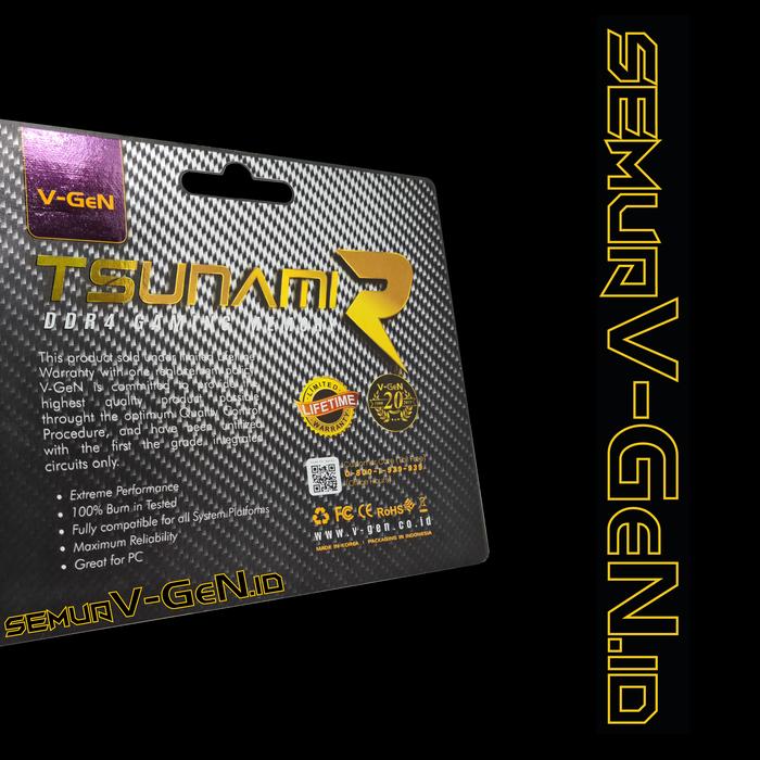 – TSUNAMI R (non RGB) RAM Tsunami dengan Kualitas dan performa yang sama dengan tipe TSUNAMI lainnya, yang membedakan hanya bentuk HEATSINK nya dan tidak memiliki lampu RGB sama seperti varian TSUNAMI biasa