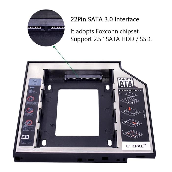 HDD Caddy ini sifatnya Universal buat laptop apa saja bisa asal ketebalan dan socket nya sama, jadi silahkan ukur saja ketebalan DVD room nya dan lihat socketnya apakah SATA INI ADALAH HDD Caddy DGN KETEBALAN 9.5mm, biasanya untuk laptop2 tipis, sebelum order mohon cek dan ukur terlebih dahulu dvd room nya agar tidak terjadi kesalahan. Apabila terjadi kesalahan bukan tanggung jawab penjual dan tidak bisa refund ataupun retur. HDD Caddy adalah solusi mudah memasang Hard disk/SSD tambahan (kedua) dengan mereplace Slot DVD-ROM di notebook anda. Sehingga notebook anda dapat memiliki 2 hardisk sekaligus. Tidak perlu lagi repot mengganti HDD atau membawa HDD external. Kami jg menyediakan Paket Bundling dengan SSD, berikut link nya: SSD 120GB: https://tokopedia.link/sJUaCSmBRP SSD 240GB: https://tokopedia.link/IRVn8EoBRP SSD 480GB: https://tokopedia.link/4QdjeJqBRP