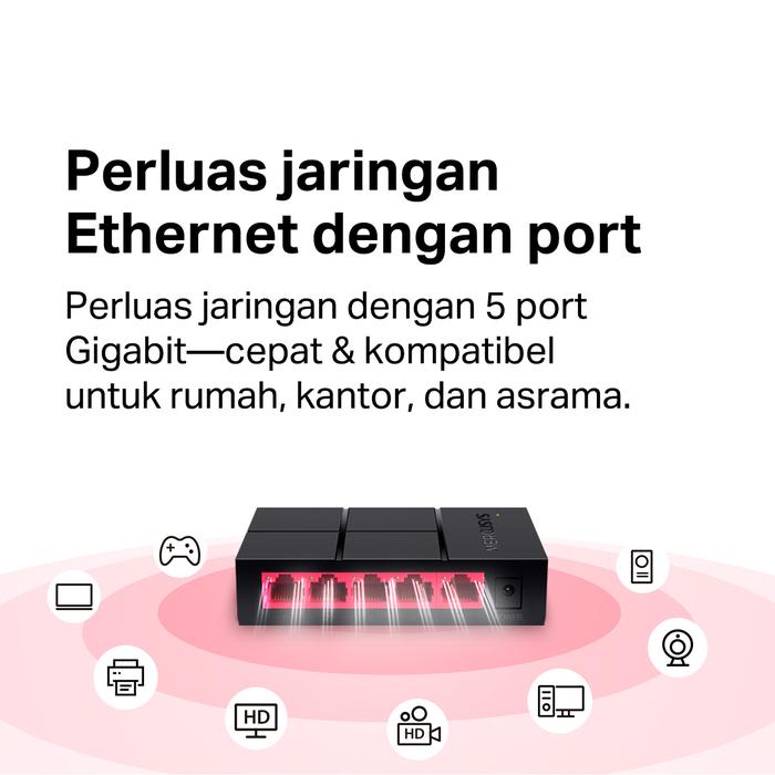 Mercusys MS105G | 5 Port Gigabit Desktop Switch | 1000 Mbps Ethernet Hub | Plug & Play | TP-Link