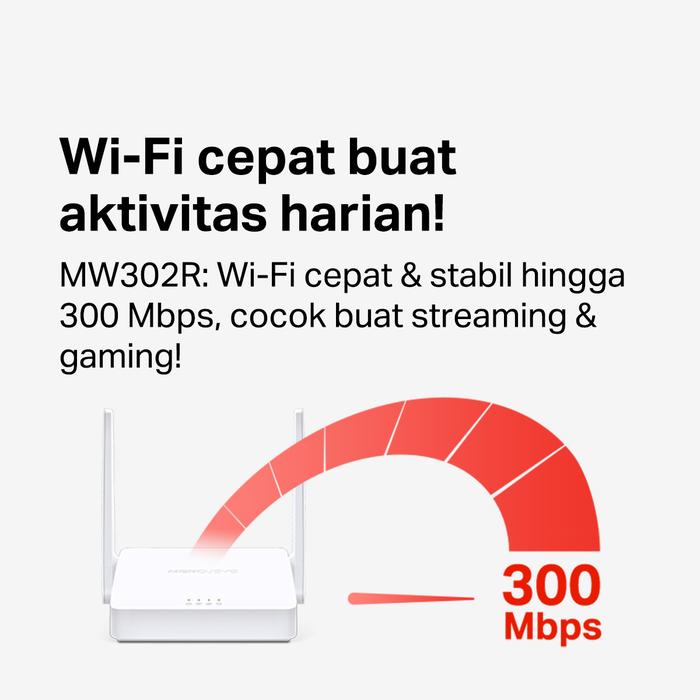 1Wi-Fi Cepat untuk Kehidupan Sehari-hari – MW302R menyediakan koneksi yang cepat dan stabil untuk memenuhi semua kebutuhan jaringan Anda dengan kecepatan hingga 300 Mbps2.Cakupan Lebih Luas – Dilengkapi dengan antena eksternal gain tinggi untuk mengirimkan sinyal Wi-Fi yang kuat ke setiap sudut rumah Anda3.Multi-Mode – Empat mode dalam satu perangkat untuk memenuhi semua skenario aplikasi : router mode, range extender mode, access point mode, wisp mode4.Pemasangan yang mudah – Halaman web yang intuitif memandu Anda melalui proses penyiapan dalam hitungan menit5.Active Parental Controls – Buat kebijakan akses yang sesuai untuk melindungi anak-anak dengan akses internet yang aman dan bertanggung jawab6.Kompatibel dengan IPv6 (Internet Protocol version 6)