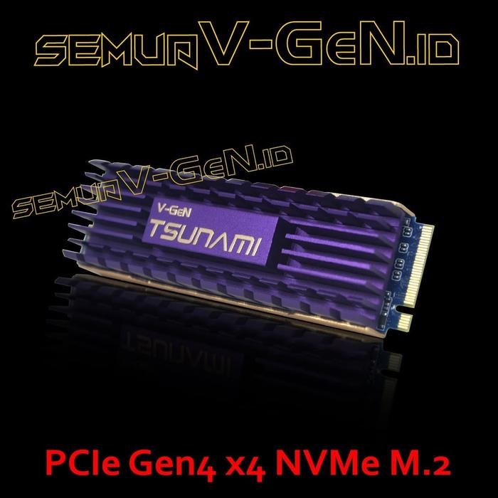 SSD M.2 NVMe 2TB V-GeN TSUNAMI PCIe Gen 4.0 x4 Ini adalah M.2 dengan jenis NVMe / PCIe Gen4 x4, sebelum membeli mohon pastikan terlebih dahulu moterboard nya sudah support NVMe / PCIe atau belum, jika Motherboard nya hanya support M.2 SATA maka tidak bisa menggunakan M.2 jenis ini, harus memakai yang jenis SATA Spesifikasi: – Interface: PCIe Gen 4.0 x4, NVMe 1.3 – Form Factor: M.2 (2280) – Controller: Phison 4th Gen LDPC amp; RAID ECC – Read / Write Speed: Up to 5.000 / 4.400 MB/s – Heat Sink: Fully Aluminium Heat Spreader – 3 Years Warranty (With one to one replacement / Rusak langsung tukar barang, tidak diservice) SSD M.2 ini hanya bisa digunakan untuk Motherboard PC yang udah ada slot SSD M.2 dengan ukuran 2280 (22mm x 80mm) dan support M.2 NVMe, TIDAK BISA UNTUK LAPTOP, Klo ragu coba langsung chat, akan kami bantu untuk cek. NOTE : Saat ini hanya motherboard dengan chipset AMD X570 yang sudah mendukung penuh PCIe GEN4. Motherboard lain bisa menggunakan SSD ini tetapi performa akan menyesuaikan menjadi PCIe GEN3. Jika memerlukan baut / mur untuk SSD ini, silahkan pilih yang varian #34;PLUS BAUT #34; pada varian yang kami sediakan pada barang ini