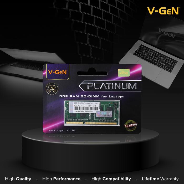 SODIMM DDR3 2GB PC-10600 1333Mhz Platinum V-GEN RAM Laptop DDR3L 2 GB 1333 MHz