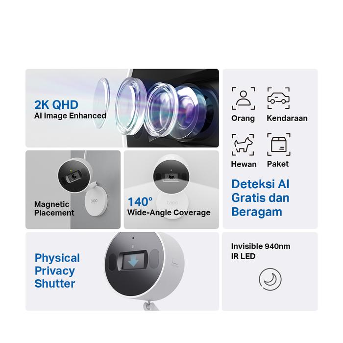 Freely Install with Magnetic Base – The compact design of Tapo C125 enables users to freely install it with a magnetic base and flexible bracket
