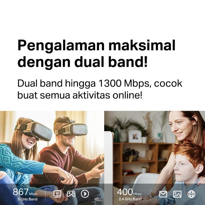 Ultimate Wi-Fi Speed Up to 1300 Mbps speeds with 400 Mbps on 2.4GHz and 867 Mbps on 5GHz, upgrades your devices to higher AC WiFi speeds.