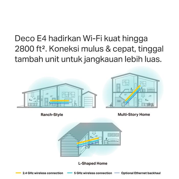 4.Deco E4 provides fast and stable connections with speeds of up to 1167 Mbps and works with major internet service provider (ISP) and modem.