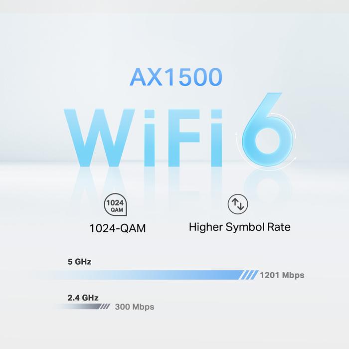 ??Faster Connections: Wi-Fi 6 speeds up to 1,500 Mbps?1,201 Mbps on 5 GHz and 300 Mbps on 2.4 GHz.?
