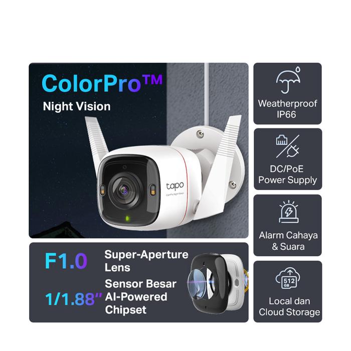 TP-Link | Tapo C325WB |2K QHD | Outdoor WiFi Camera | ColorPro |Smart IP CCTV | Kamera Full Color Night Vision | IP66 Wireless