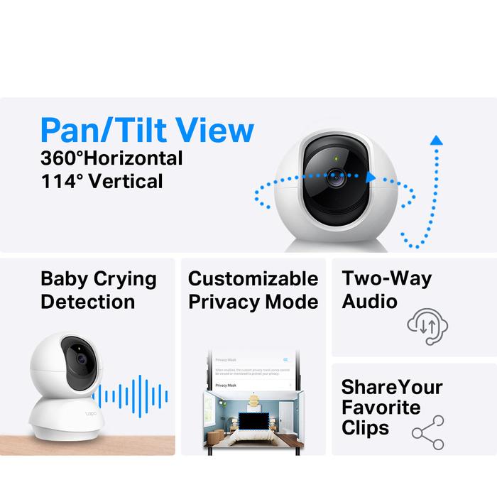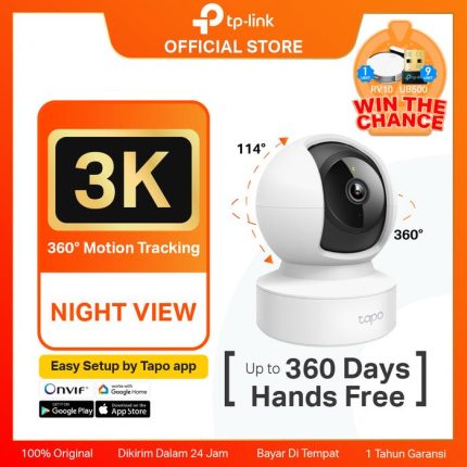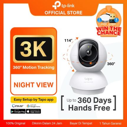 Scan QR code untuk menangkan hadiah menarik iphone 13 Tapo TC60 High Definition Video – Records every image in crystal-clear 1080p definition Advanced Night Vision – Provides a visual distance of up to 30 ft Motion Detection and Notifications – Notifies you when the camera detects movement Sound and Light Alarm – Trigger light and sound effects to frighten away unwanted visitors Two-Way Audio – Enables communication through a built-in microphone and speaker Safe Storage – Locally stores up to 128 GB on a microSD card, equal to 384 hours (16 days) of footage (based on laboratory conditions) Easy Setup and Management – Manage everything with Tapo app Tapo TC65 Ultra-High-Definition Video: Records every image in crystal-clear 3MP definition. Wired or Wireless Networking: Connect your camera to the network through Ethernet or WiFi for more flexible installation. Advanced Night Vision: Provides a visual distance of up to 98 ft (30m) even in total darkness. Motion Detection and Notifications: Notifies you when the camera detects movement. Sound and Light Alarm: Trigger light and sound effects to frighten away unwanted visitors. Two-Way Audio: Enables communication through a built-in microphone and speaker. Safe Storage: Locally stores up to 128 GB 3MP video on a microSD card, offering convenient access to your video footage. Voice Control: Free Up Your Hands with Voice Control: Works with the Google Assistant and Amazon Alexa. (Google Assistant and Amazon Alexa are not available in all languages and countries). Tapo TC70 High-Definition Video: Records every image in crystal-clear 1080p definition Pan and Tilt: 360 horizontal and 114 vertical range Advanced Night Vision: Provides a visual distance of up to 30 ft Motion Detection and Notifications: Notifies you when the camera detects movement Sound and Light Alarm: Trigger light and sound effects to frighten away unwanted visitors.