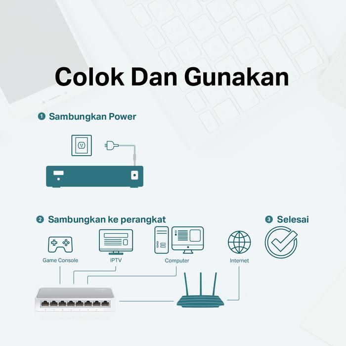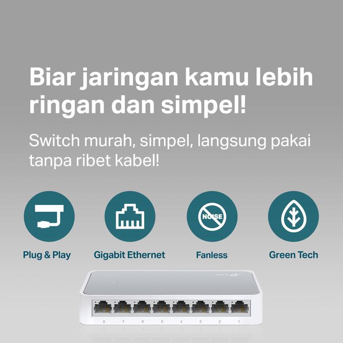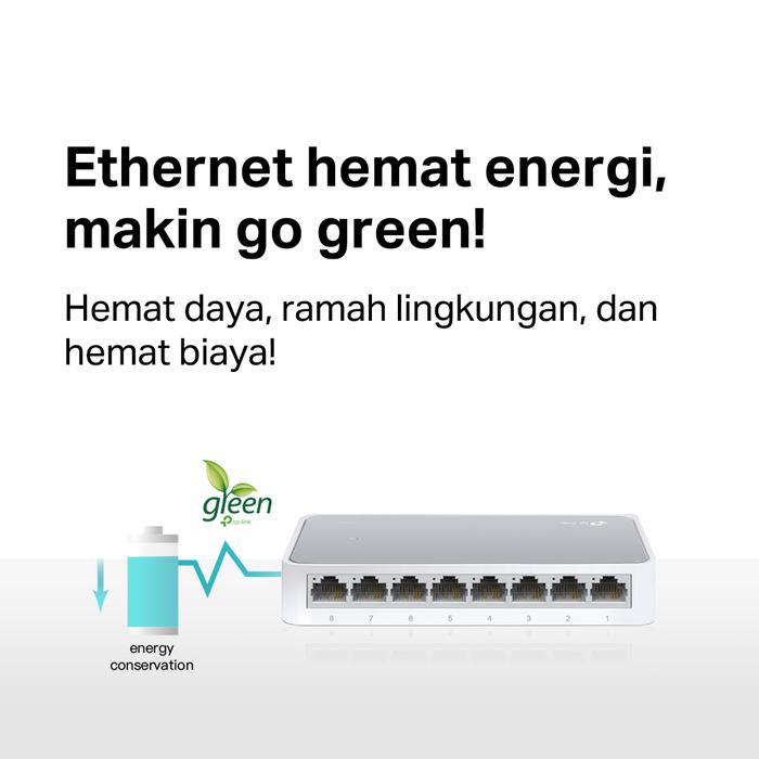 Key Features :- 8 RJ45 ports 10 / 100Mbps Auto-Negotiation- Semua port didukung auto MDI / MDIX jadi tidak perlu khawatir tentang jenis kabel cukup plug and play.- Teknologi Green Ethernet Akan Menghemat Power Hingga 60%- Pasang Dan Jalankan, Tidak Memerlukan Konfigurasi Apapun- Mendukung IEEE 802.3x Mengkontrol Aliran Pada Duplex Mode Penu Dan Tekanan Balik Untuk Setengah Mode Duplex- Arsitektur Penerusan Non-Blocking dan Filter Paket Pada Kecepatan Kawat Penuh Untuk Hasil Maksimum- Mendukung MAC Address Auto-Learning and Auto-Aging- Desain tanpa kipas memastikan operasi yang tenang.