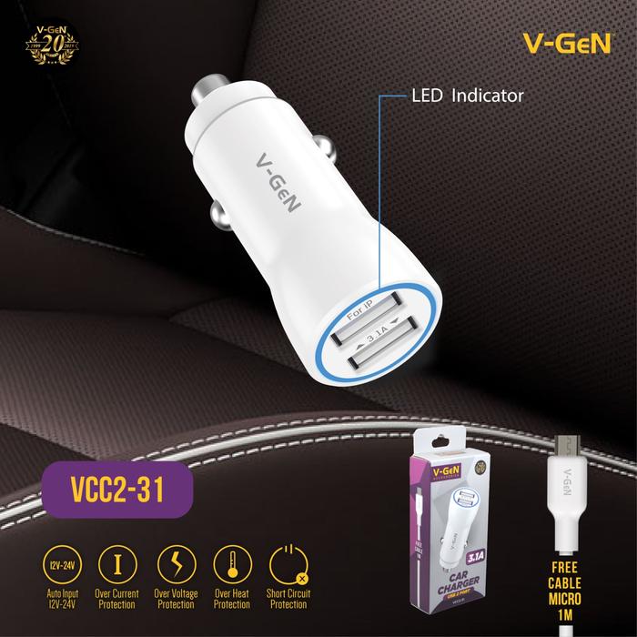 V-GeN Car Charger Fast Charging VCC2-31 USB 2 Port 3.1A VGEN
