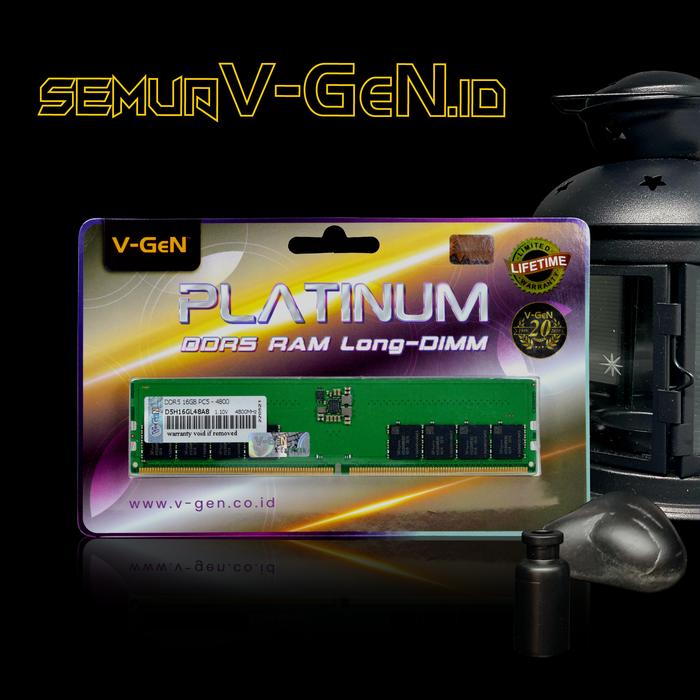 V-GeN RAM Longdimm DDR5 Dimension : 130mm x 30mm x 2mm Memory Series PLATINUM DDR5 Memory Size 16GB (1 x 16GB) Speed Rating PC5-38400 (DDR5 4800MHz) Chipset : Major Brand (Samsung/SKHynix/Micron) Package Memory Pin: 288 Pin Package Memory Format DIMM Type : Unbuffered Voltage : 1.1V ECC : No Registered : No Warranty: Limited Lifetime Warranty