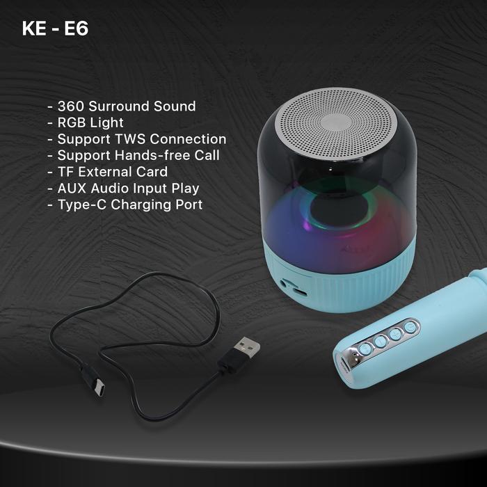-Single Horn Vibration Film Of Channel System Control Mode: Button Functional Features: LED light /TF card /AUX -Maximum Extended Capacity: 32G -Transmission Distance: 10 meters -Frequency Response: 160Hz-1 6KHz -The Diameter Of The Loudspeaker Unit: 52MM -Signal To Noise Ratio: 85dB Distortion: 10% Impedance: 400 Material: ABS Power: 8W Maximum output Power: 8 W Battery Capacity: 1500mAh Charging Time: 1-2 hours Playing Time 3-4 hours 360 surround sound RGB light Support TWS Connection Support hands-free call TF External card AUX audio input play Type-c Port